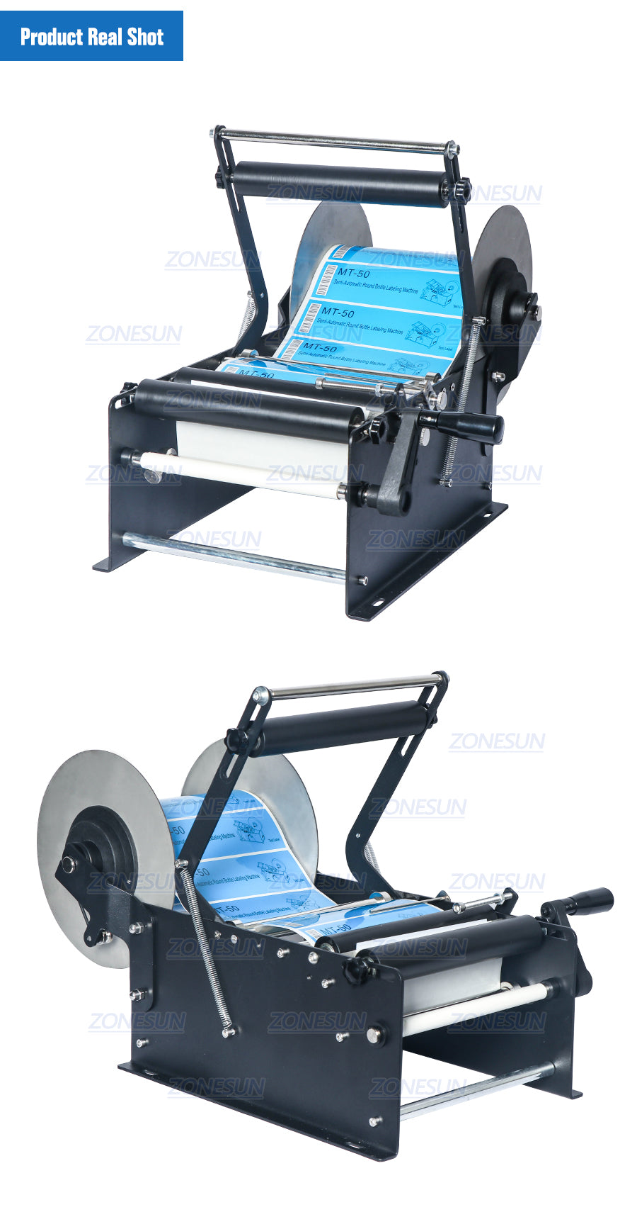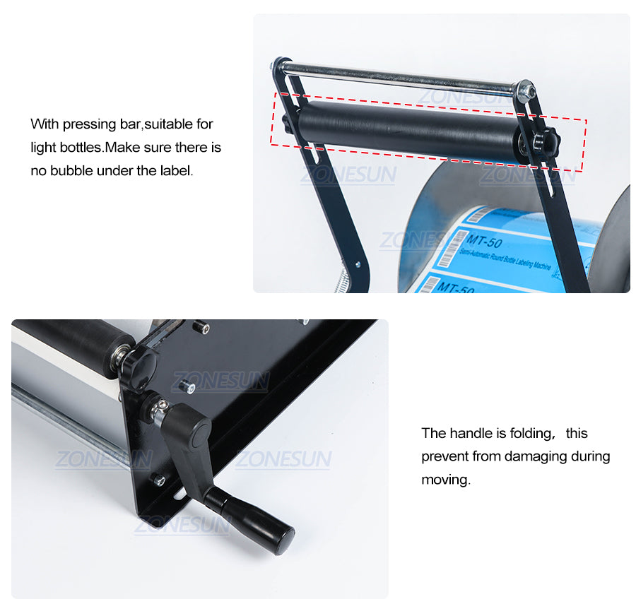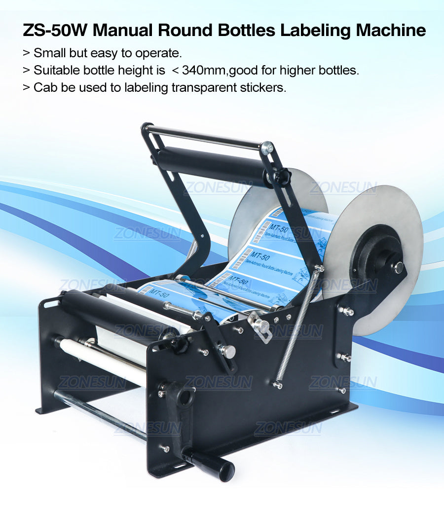 We upgrade our manual labeling machine to make it can be used to label stickers on higher round bottles like wine bottles. This labeling machine is with small machine body, and easy to operate. It is ideal choice for small scale production.