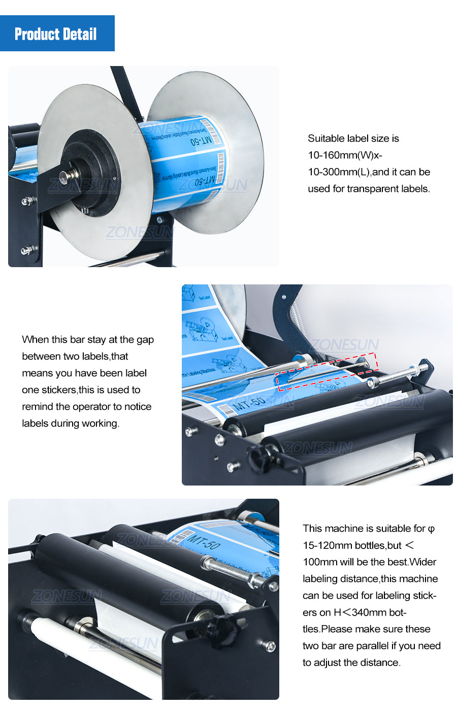 Designed for labeling stickers on round bottles like wine bottles, beer bottles, beverage bottles,water bottles etc. It is widely used in food, beverage, cosmetics industries.