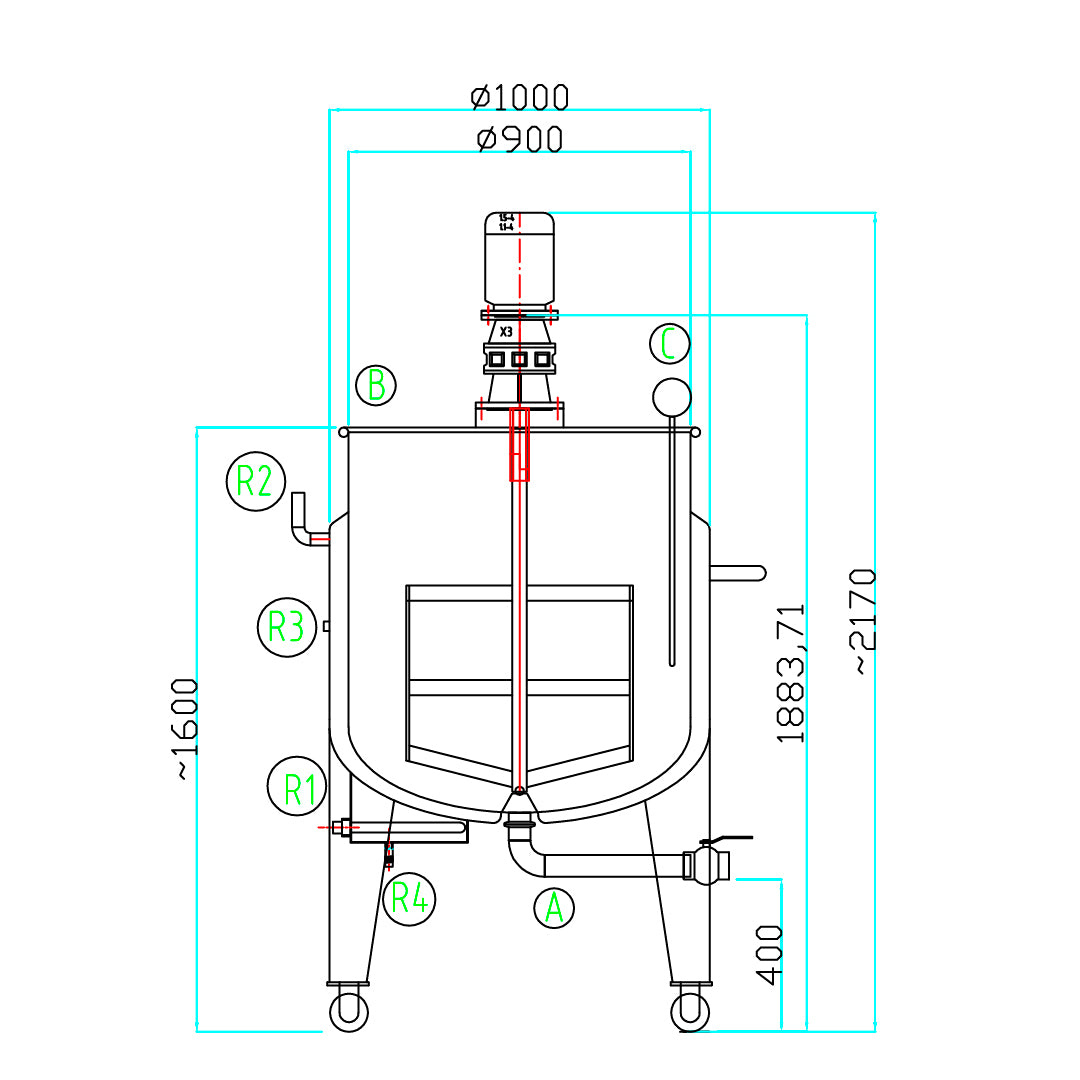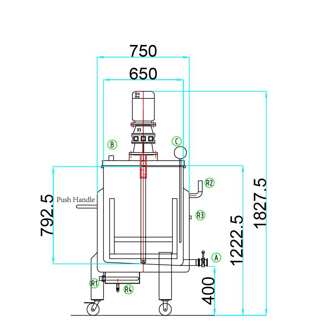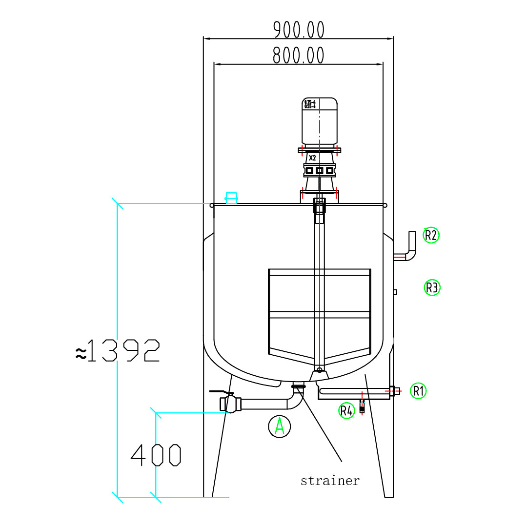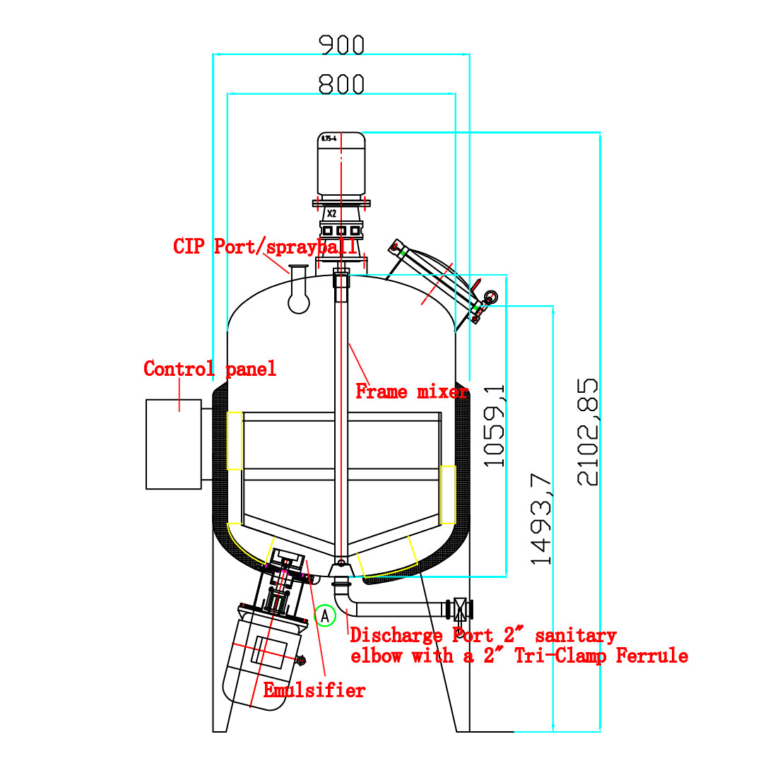 Requirements: The system should have higher power to quickly dissolve sugar and tea. It should be equipped with a spray ball to connect with a CIP system for fast cleaning. Capacity: 500L.