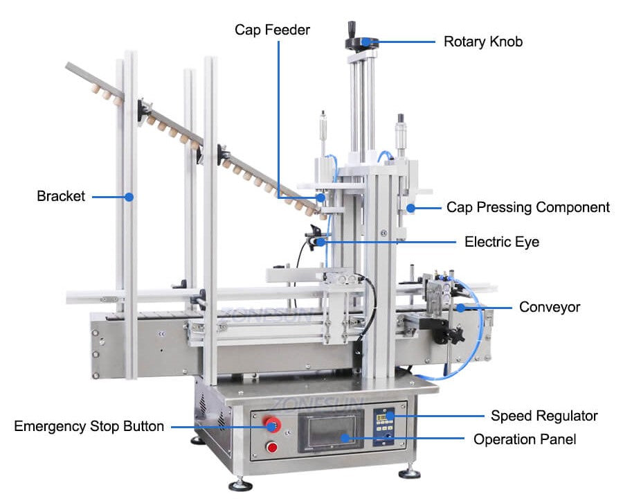 Zonenun ZS-XG1870D1 Desktop Automatische Glasflaschenkappe Kork Pressmaschine Jar Whisky Plastikflaschenverpackungsmaschine mit Kappe Feeder