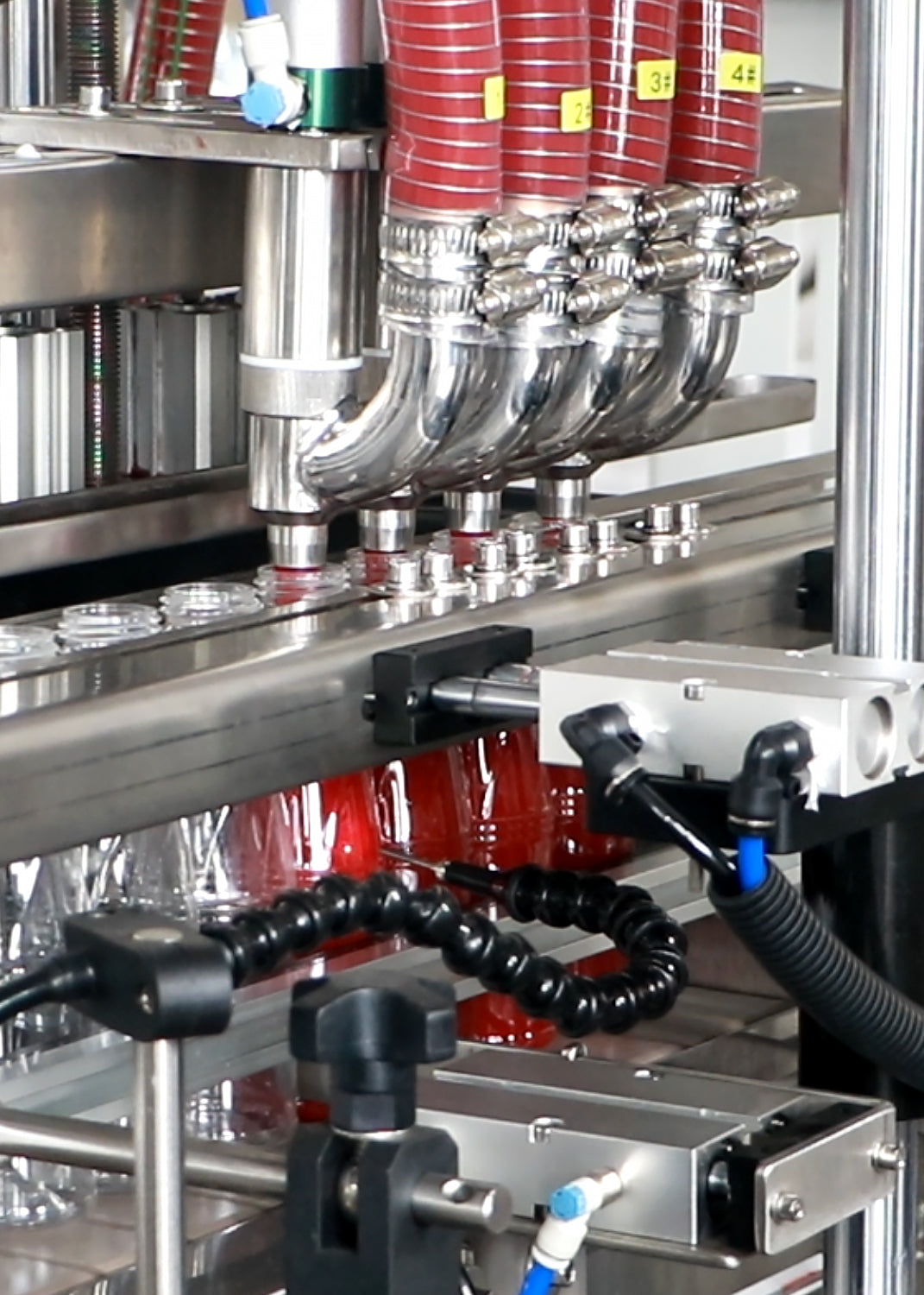 Sauce viscosity may change with time or temperature fluctuations. This inconsistency can affect the accuracy and uniformity of filling. To solve this problem, we usually equip the storage hopper of the filling machine with an mixer or a pre-processing machine with mixing function (like mixing tank) to pretreat sauce before filling.The heater is also optional.These can ensures sauce will be filled evenly and accurately.Additionally, Viscous materials often exhibit high surface tension, and high viscosity can cause the sauce to cling to the walls of the filling nozzle or create a stringy flow.As the filling nozzle is withdrawn from the container, sauce will cling to the nozzle's outer surface, leading to dripping.For solving this problems, we will customized the anti-dripping filling nozzles, this can prevent sauce dripping efficiently
