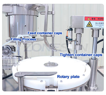 Maszyna integruje funkcje napełniania, ograniczania i ograniczania płyty obrotowej, która jest dostosowana zgodnie z rozmiarem pojemnika, poprawiając dokładność produkcji i zmniejszając przestrzeń roboczą