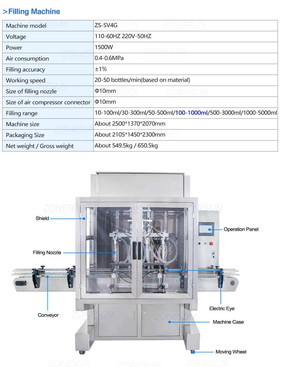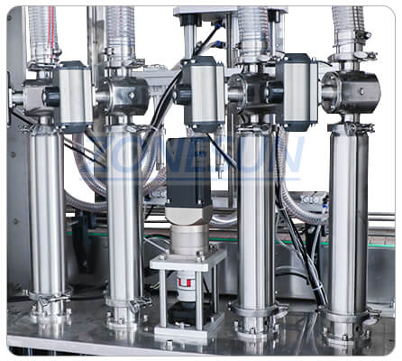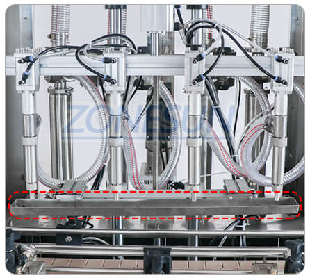 The filling nozzle is with anti-dripping design,ensure the production cleanliness Each nozzle can be controlled separately We can also customize 2/6/8 filling nozzle of this machine.