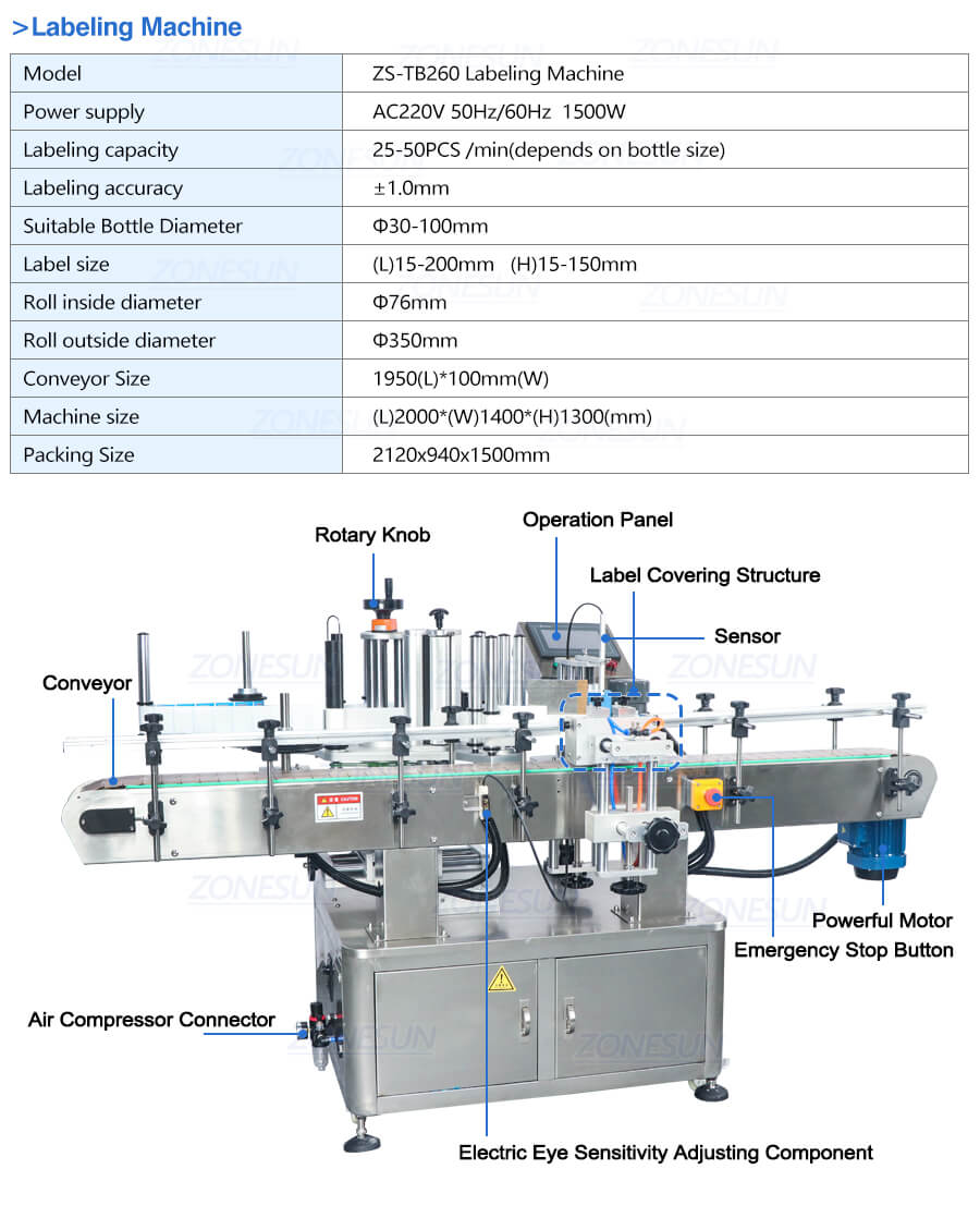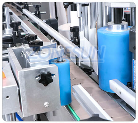 Scrolling to label stickers,this machine is suitable for single side or double side labeling stickers on round bottles.It works accurately and helps to improve working efficiency and offer better labeling effect.
