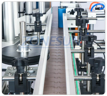 The conveyor width can be adjusted according to the bottle diameter.The transferring speed is adjustable by operation panel.