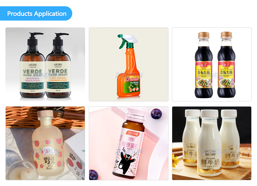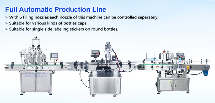 This production line is suitable for small scale production,can fill liquid,cap bottles and label stickers automatically.These desktop type machines can save working space and help you improve working efficiency greatly.It is widely used in food,beverage,cosmetics,daily chemical and industries.
