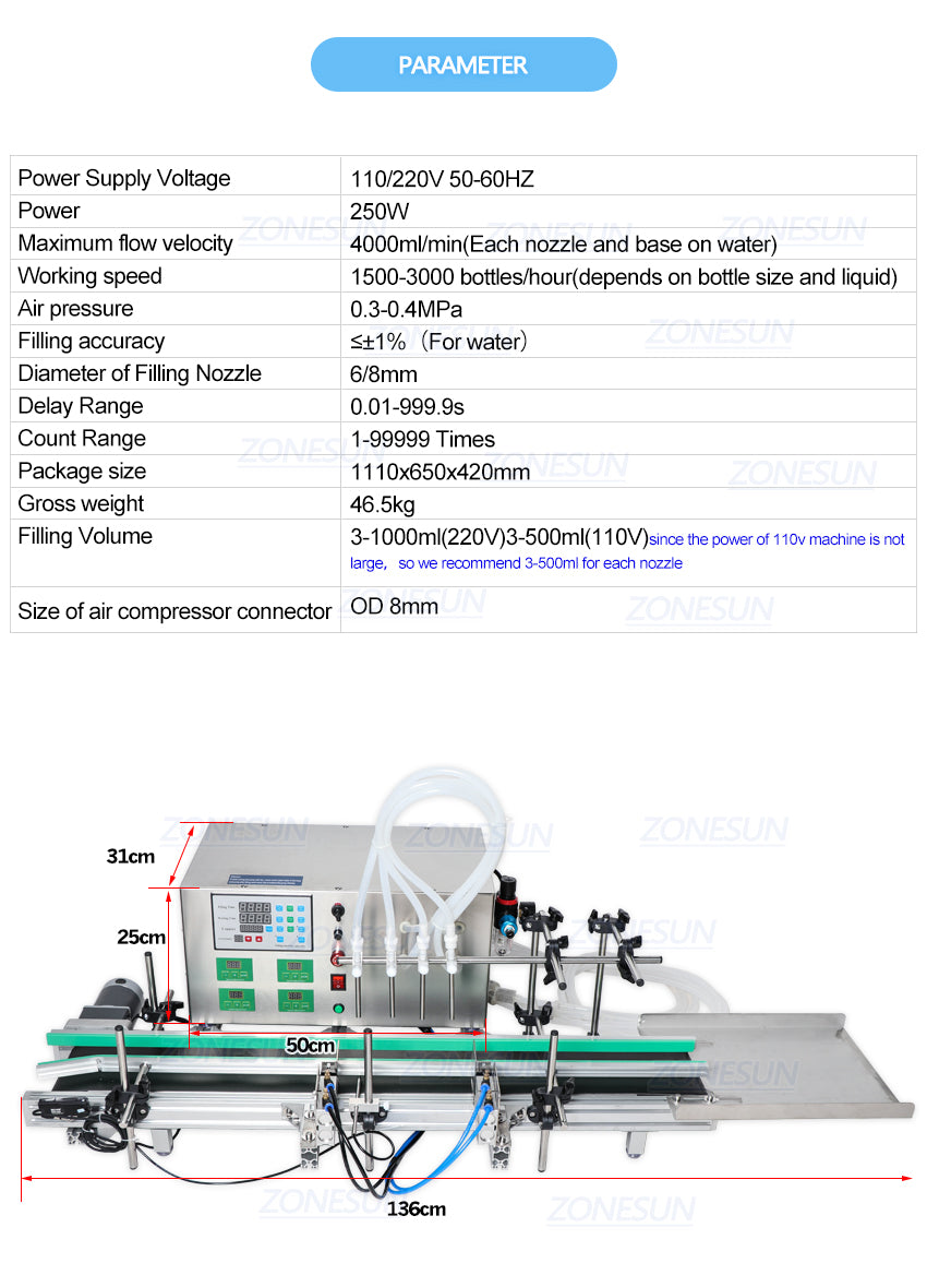 เครื่องนี้สามารถใช้สำหรับการเติมของเหลวที่หลากหลายเช่นน้ำนมโทนเนอร์และอื่น ๆ มีการใช้กันอย่างแพร่หลายในอุตสาหกรรมอาหารเครื่องสำอางและแท็บเล็ต